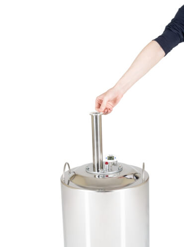 Широкие соединительные трубки диаметром 18 мм и спускной клапан гарантируют полную безопасность при перегонке. Закупорка исключена.